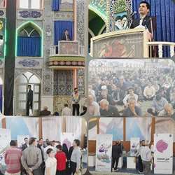 سخنرانی مدیرعامل شرکت شهرکهای صنعتی کرمان  پیش از خطبه نماز جمعه  و همچنین برپایی میز خدمت با حضور مدیر عامل و معاونین این شرکت در مصلای امام علی کرمان